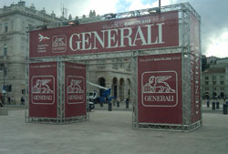 Flash srl dispone di mezzi itineranti pubblicitari con poster mt 6x3 o 4x3, di totem trifacciali (ultima immagine) e di strutture pubblicitarie o portali di ingresso realizzati con appositi tralicci. Quest'ultimi sono disponibili in varie dimensioni con applicazione di reti microforate, luci, impianto audio ecc. Visita la gallery dei mezzi itineranti, clicca qui